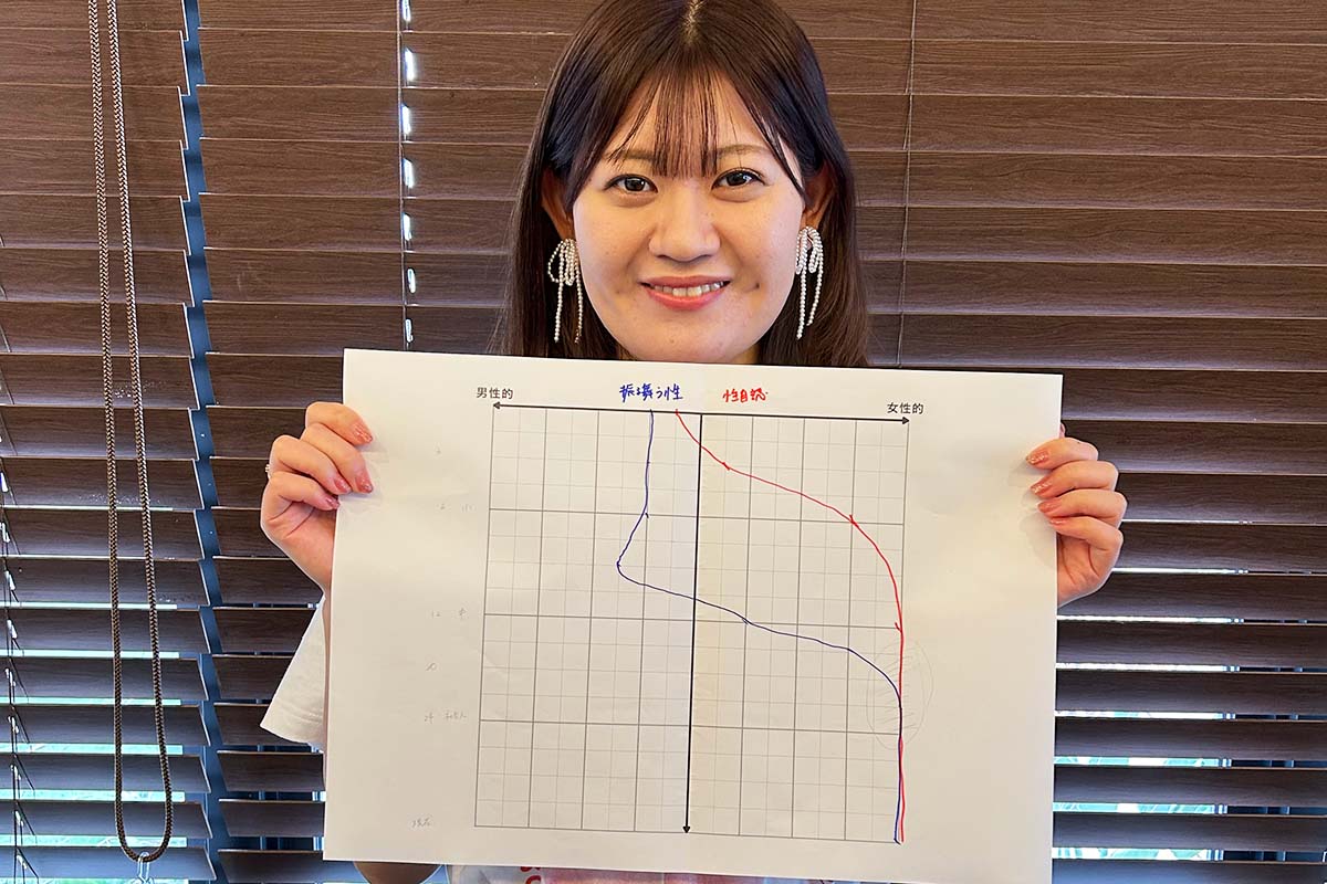 体の発達が来たあたりから、もう完全に女の子になるしかなかったんです。回避できないと思って、もう諦めたというタイミングでした。ただ中学で女子校に進学したことで転機があったんです。女子だらけの環境の女子は異性がいる環境の女子と違っていたんです。今までは異性がいるから自分の中で比較が起こっていて、男女という役割がすごくシビアに突きつけられている感じがしてかなりショックを受けていたんですが、女子校に入ったら全員が平等になったんです。女子しかいない中で役割を決めていくので、初めて自分の個性を知ることができたというか、向き合えた気がしたんです。男の子のように振る舞わなくても、認められる自分というものがあるんじゃないかなと模索し始めて、グラフのように統合できていたような気はしています。